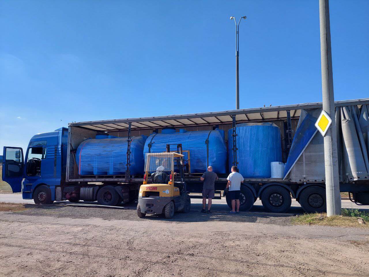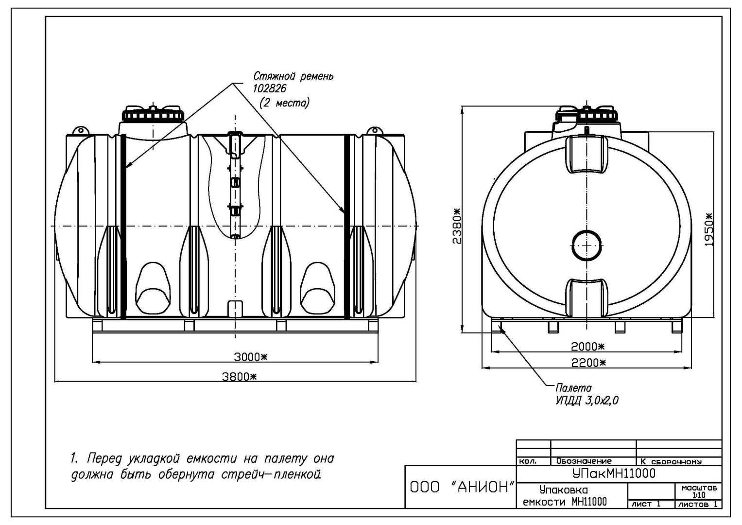 - Для механизации погрузочных работ (масса емкости около 450кг) при поставке – емкость установлена на транспортировочную паллету и грузится только через открытый боковой борт автомашины с помощью автопогрузчика с вилочным захватом.