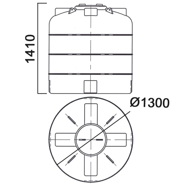 Емкость имеет вертикальную цилиндрическую форму, позволяющую хранить значительный объем жидкости на небольшом пространстве. Широкая горловина удобна для обслуживания емкости внутри.