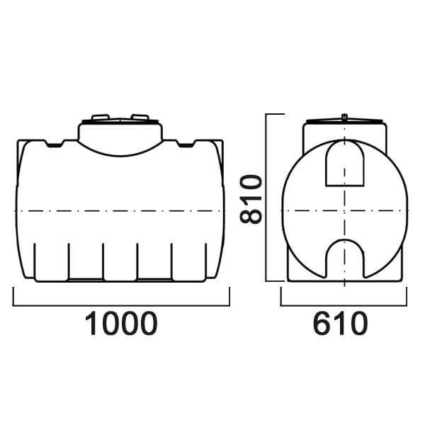 Емкость имеет устойчивую горизонтальную форму на трех опорах, оптимальную для эксплуатации в условиях ограниченной высоты. Подходит как для стационарного хранения, так и для установки на тихоходный транспорт с ограничением по скорости до 40 км/ч. В корпусе предусмотрены углубления для хомутов, при помощи которых бак крепится на транспортное средство. Широкая горловина позволяет обслуживать емкость внутри. В комплект входит крышка с дыхательным клапаном.