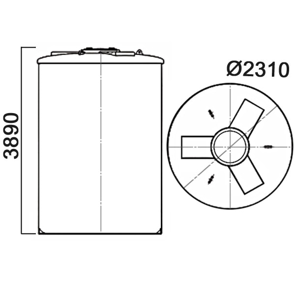 Емкость имеет вертикальную цилиндрическую форму. Широкая горловина удобна для обслуживания емкости внутри. В комплект входит крышка с дыхательным клапаном. Возможен монтаж крышки без дыхательного клапана.