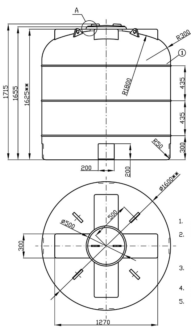Емкость имеет вертикальную цилиндрическую форму. Широкая горловина удобна для обслуживания емкости внутри.