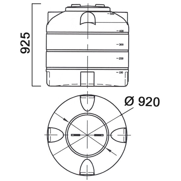 Емкость имеет вертикальную цилиндрическую форму, позволяющую хранить значительный объем жидкости на небольшом пространстве. Широкая горловина удобна для обслуживания емкости внутри.