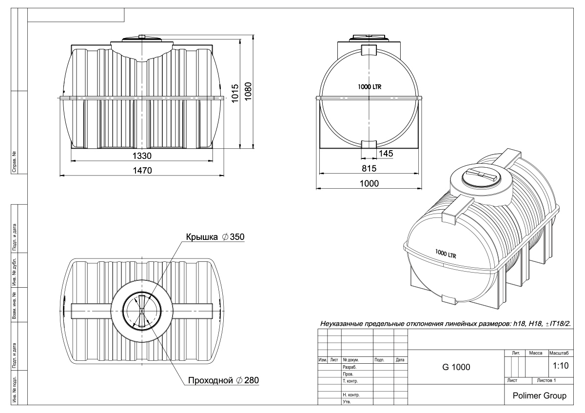 Горизонтальная цилиндрическая емкость G 1000 предназначена для хранения питьевой и технической воды, дизельного топлива.