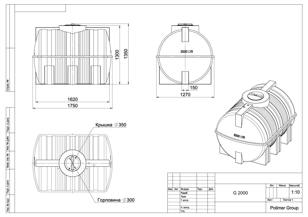 Горизонтальная цилиндрическая емкость G 2000 предназначена для хранения питьевой и технической воды, дизельного топлива.