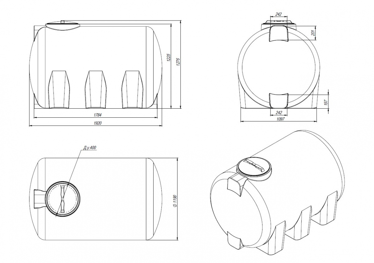 Крупногабаритная горизонтальная емкость объемом 2 000 литров предназначена для транспортировки и хранения веществ плотностью до 1,0 г/см³ включительно, таких как: