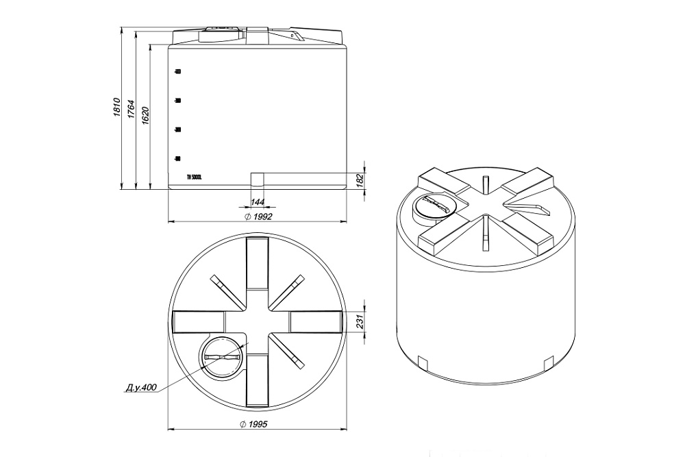 Крупногабаритная вертикальная бочка ТH 5000л имеет меньшую высоту и большую ширину по сравнению с емкостью T 5000л.