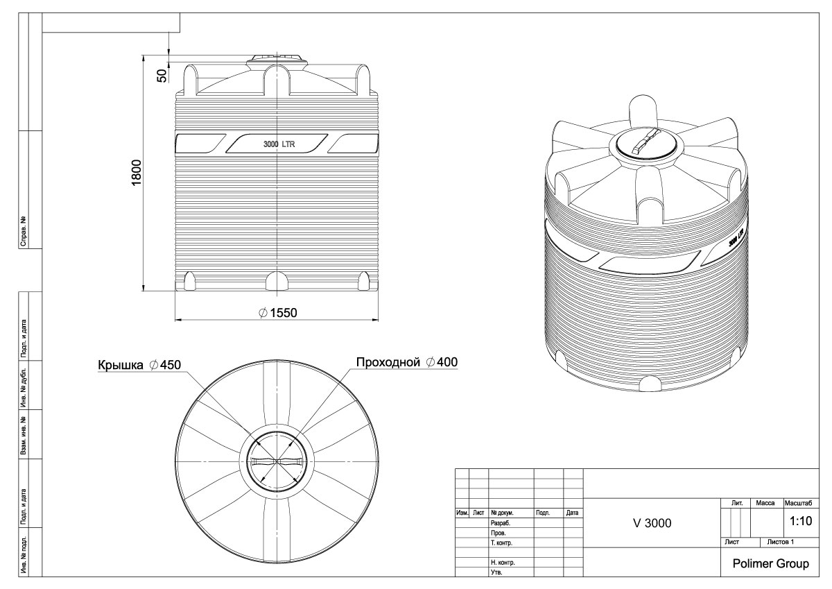 Емкость V 3000 объемом 3000 литров обладает улучшенными эксплуатационными характеристиками благодаря специально разработанным ребрам жесткости. Эта емкость обладает повышенной устойчивостью к физическим нагрузкам. В ней можно хранить питьевую и техническую воду, различные жидкости и дизельное топливо.