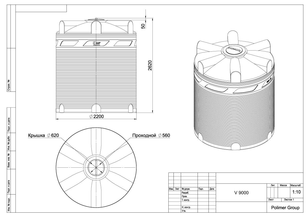 Емкость V 9000 литров (TV9000S13)