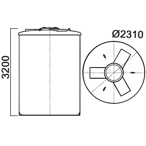 Емкость имеет вертикальную цилиндрическую форму. Широкая горловина удобна для обслуживания емкости внутри. В комплект входит крышка с дыхательным клапаном. Возможен монтаж крышки без дыхательного клапана.