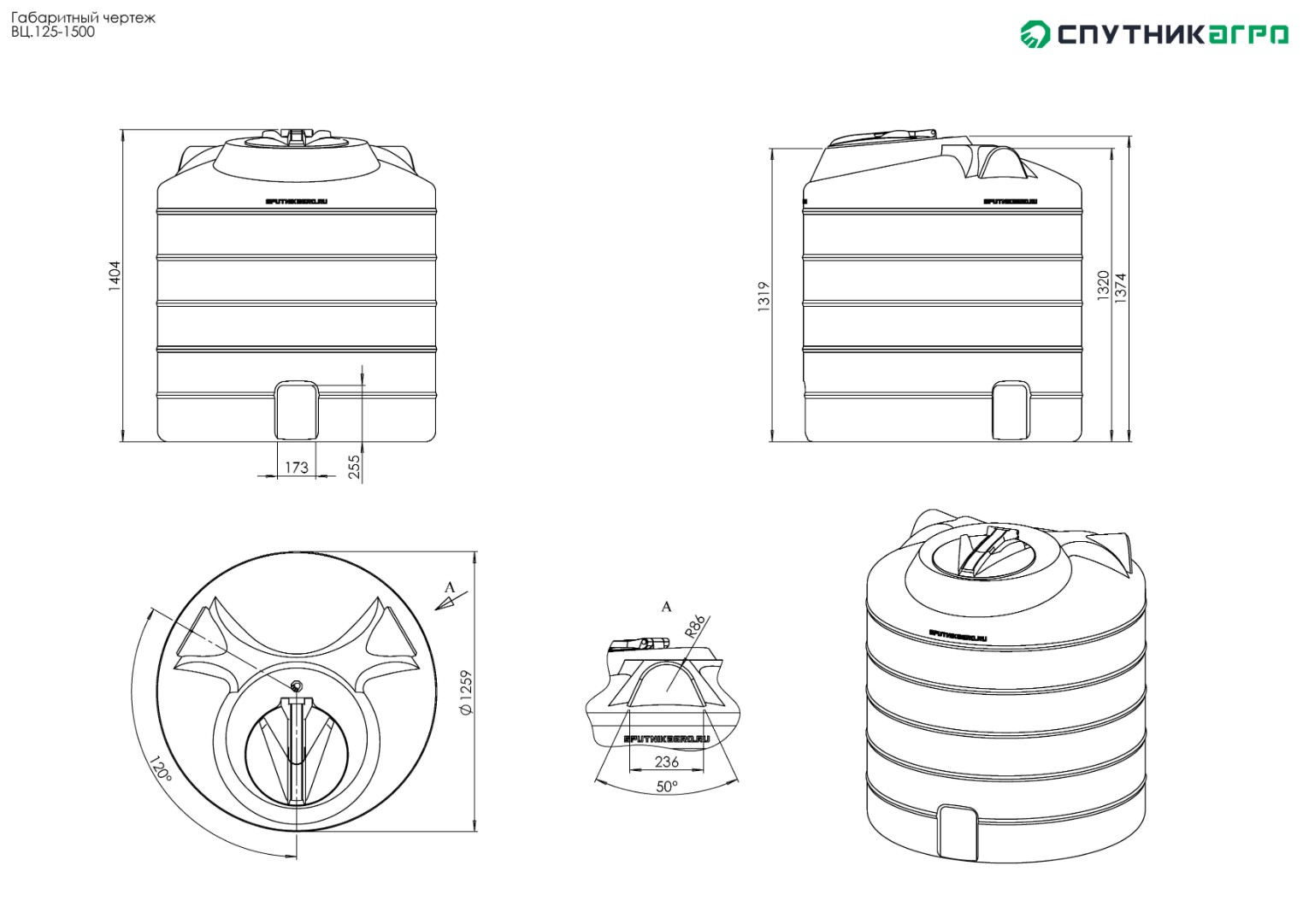Пластиковая вертикальная емкость ВЦ.125.О-1500 литров (1,5 м3) Спутник Агро