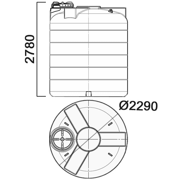 Емкость имеет вертикальную цилиндрическую форму. Отличительной особенностью емкости является горловина, расположенная сбоку верхней площадки, что упрощает заполнение и дальнейшее обслуживание бака при эксплуатации.