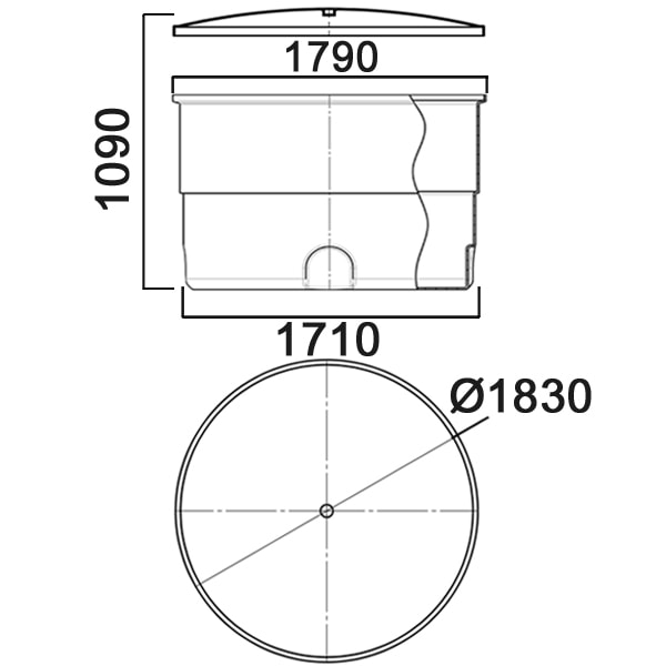 Емкость имеет универсальную вертикальную форму, позволяющую хранить значительный объем жидкости на небольшом пространстве, и съемную крышку по всему диаметру, что позволяет обслуживать резервуар внутри.