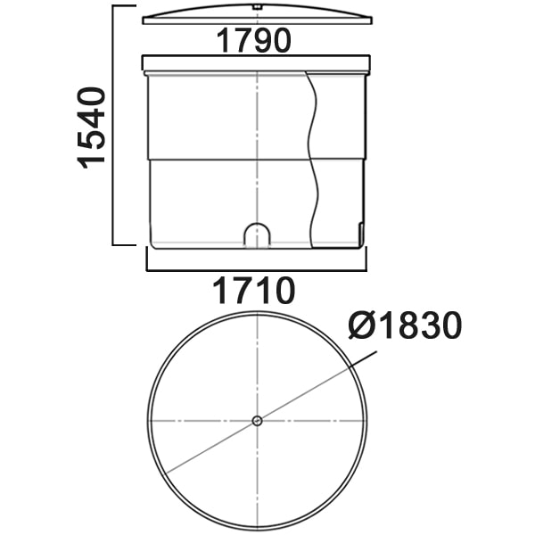 Емкость имеет универсальную вертикальную форму, позволяющую хранить значительный объем жидкости на небольшом пространстве, и съемную крышку по всему диаметру, что позволяет обслуживать резервуар внутри.