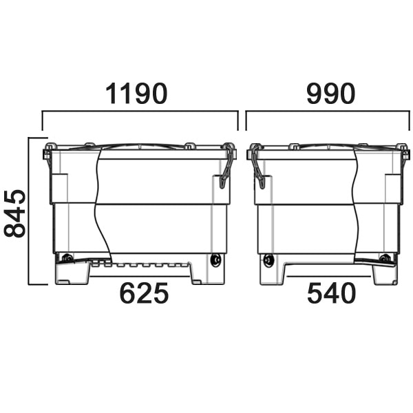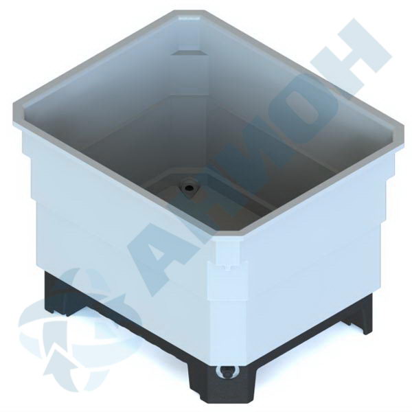 Пластиковый контейнер представляет собой бесшовный резервуар из светостабилизированного полиэтилена на подставке. В нижней части оснащен он двумя сливными штуцерами с заглушками. Дополнительно может комплектоваться съемной усиленной крышкой К650. Крышка крепится к изделию четырьмя резиновыми запорами (рабберами).