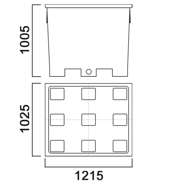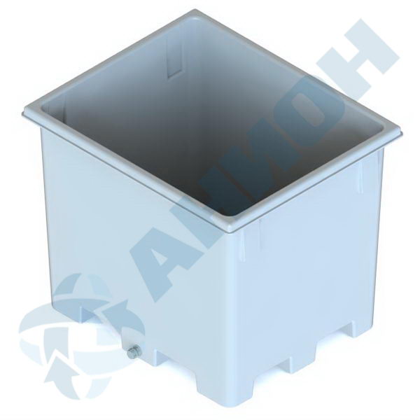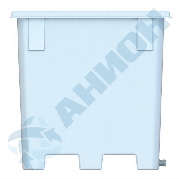 Пластиковый контейнер представляет собой бесшовный резервуар из светостабилизированного полиэтилена на опорах. В нижней части он оснащен сливным штуцером с заглушкой.