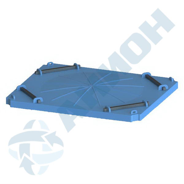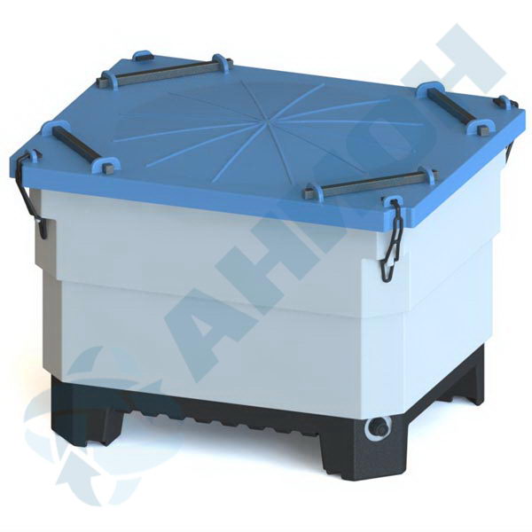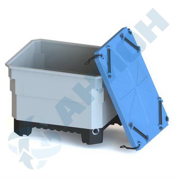 Имеет усиленную конструкцию. На внешней стороне предусмотрены специальные металлические бортики, благодаря которым в закрытом положении крышка обеспечивает устойчивое штабелирование пустых и заполненных контейнеров.