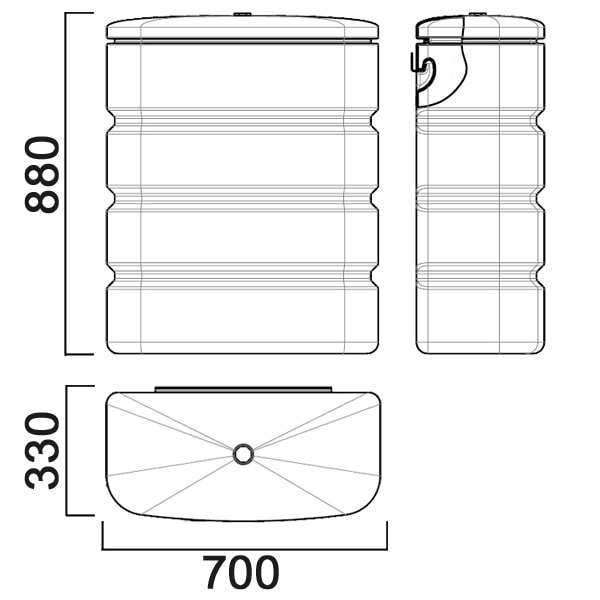 Имеет эргономичную прямоугольную форму с плоской задней стенкой, легко помещается в угол помещения, плотно прилегая к его стене, не загромождая пространство. На задней стенке предусмотрена верхняя кромка и стальной кронштейн, при помощи которого крепится бак на стену.