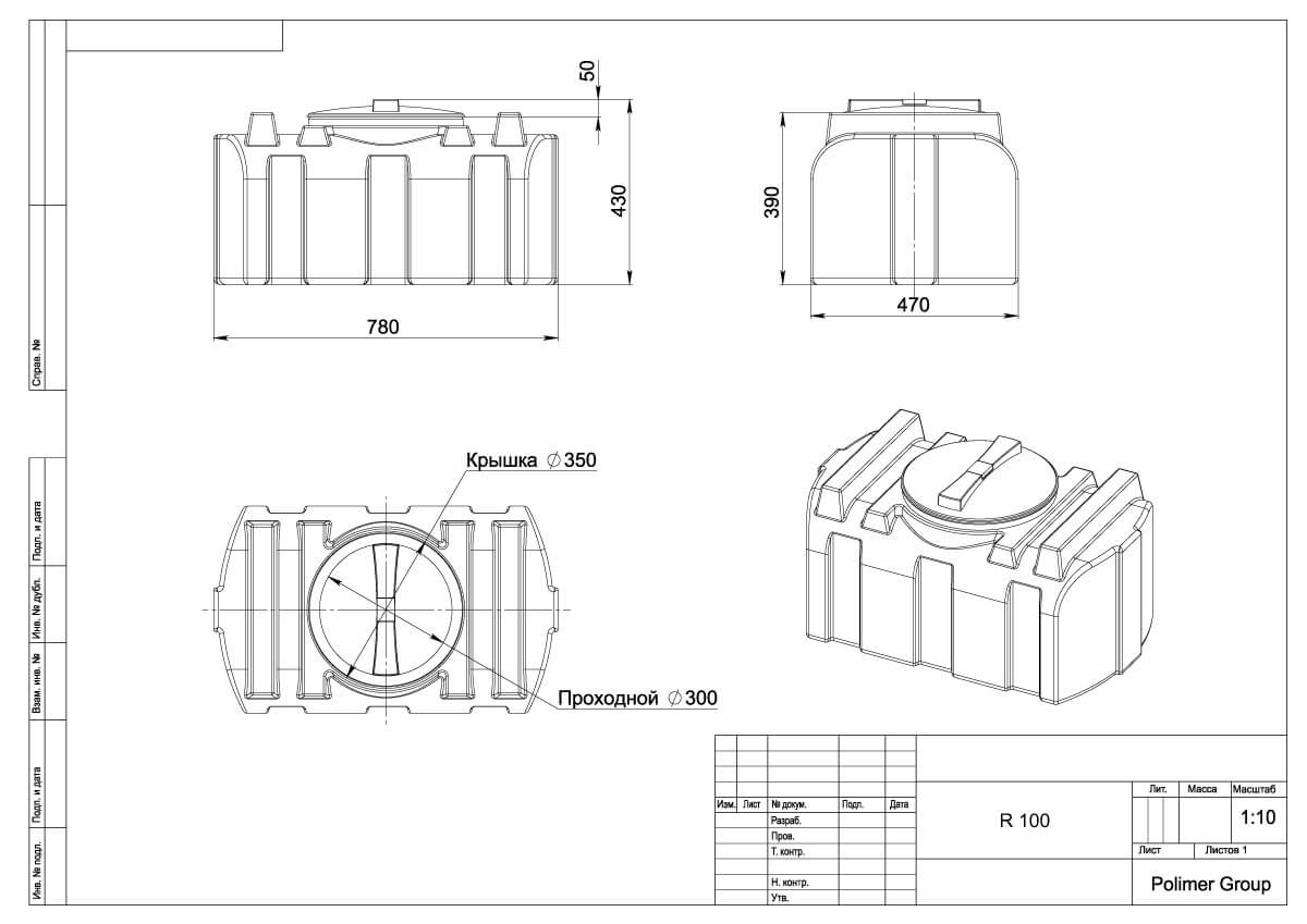 Емкость R 100 – это прямоугольный пластиковый бак объемом 100 литров, предназначенный для хранения питьевой воды, технических жидкостей, а также дизельного топлива.