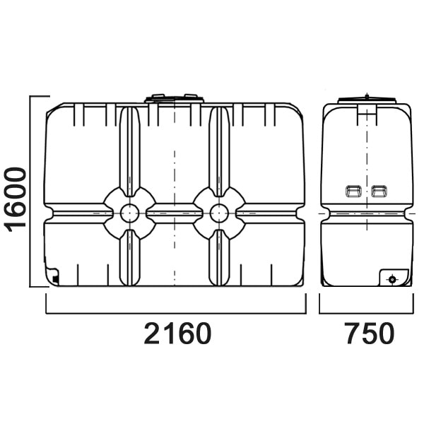 Емкость прямоугольная 2000 литров с дыхательным клапаном и сливом