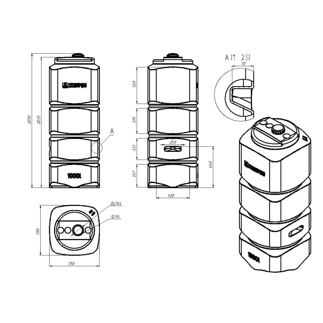 Компактная емкость объемом 1000 литров - отличное решение для хранения различных веществ в условиях ограниченного пространства. Специальная форма баков серии L обеспечивает их жесткость и устойчивость на поверхности.