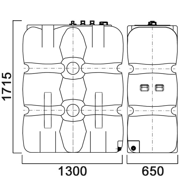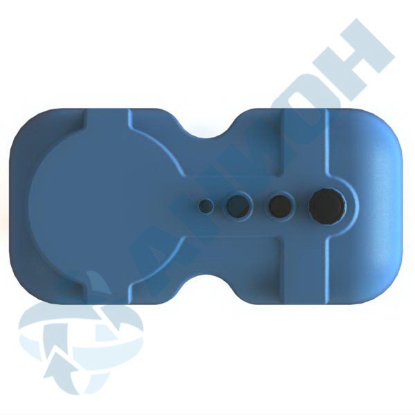 Емкость имеет эргономичную прямоугольную форму, вертикальное исполнение и компактные размеры, позволяющие проносить бак в стандартный дверной проем. В верхней части емкости предусмотрены три штуцера для подсоединения фикс-пакета, который позволяет подключить бак к котлу в системе автономного отопления и к дизельгенератору в системе автономного электроснабжения.