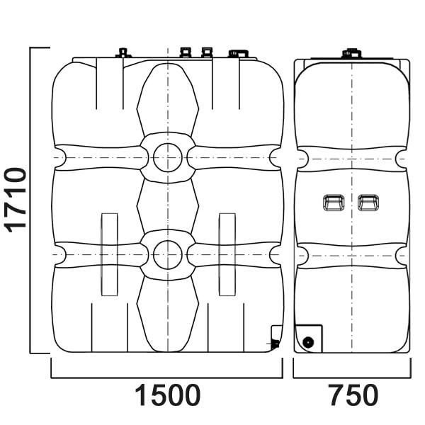 Емкость прямоугольная 1500 литров для дизельного топлива со сливом