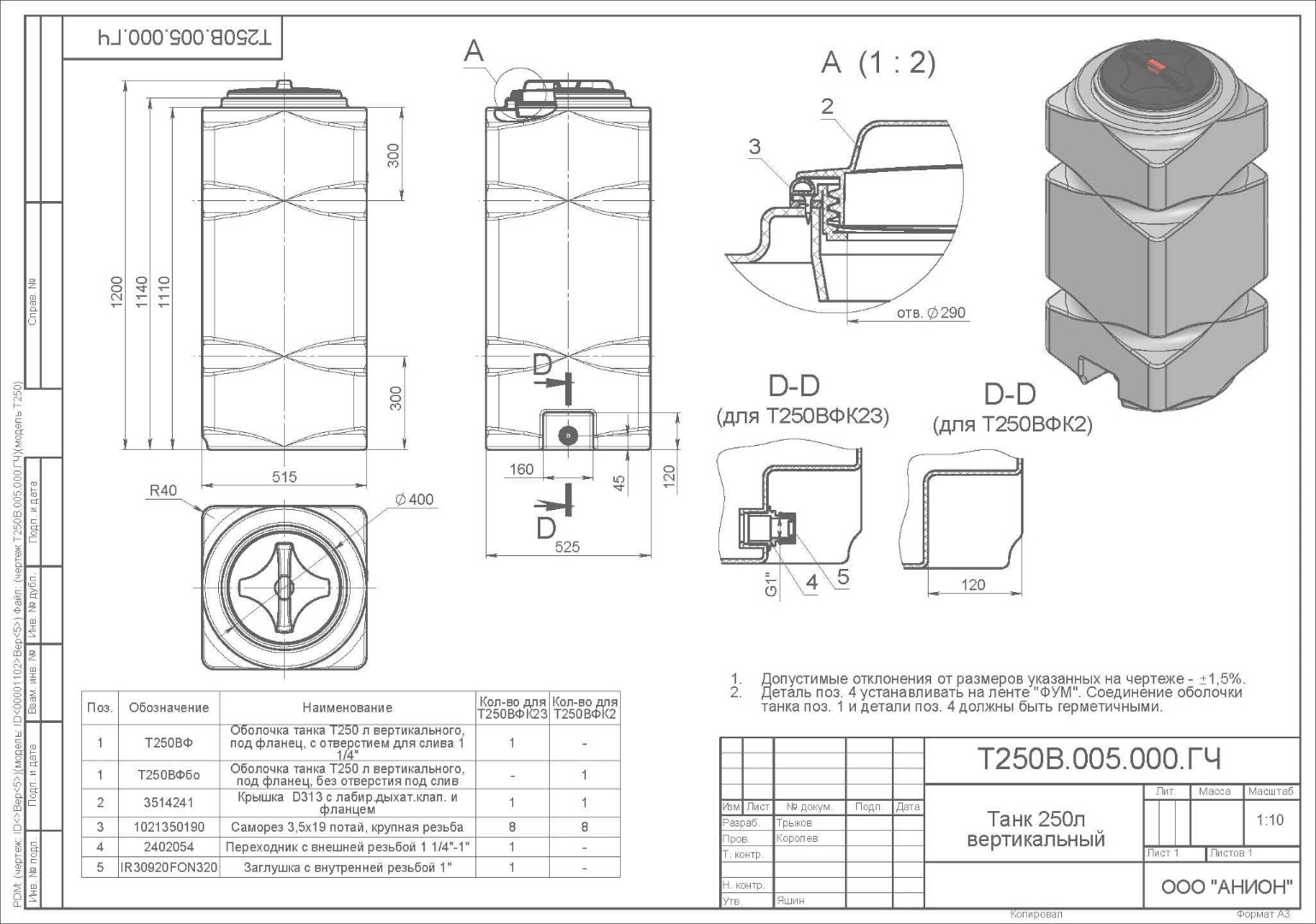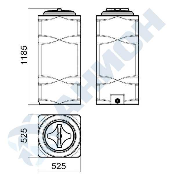 Емкость имеет эргономичную прямоугольную форму, вертикальное исполнение и компактные размеры, благодаря которым бак можно проносить в стандартный дверной проем. Широкая горловина позволяет обслуживать емкость внутри. В комплект входит крышка с дыхательным клапаном. Возможна установка крышки без клапана.
