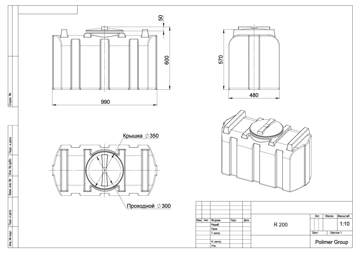 Емкость R 200 – это прямоугольный пластиковый бак объемом 200 литров, предназначенный для хранения питьевой воды, технических жидкостей, а также дизельного топлива.