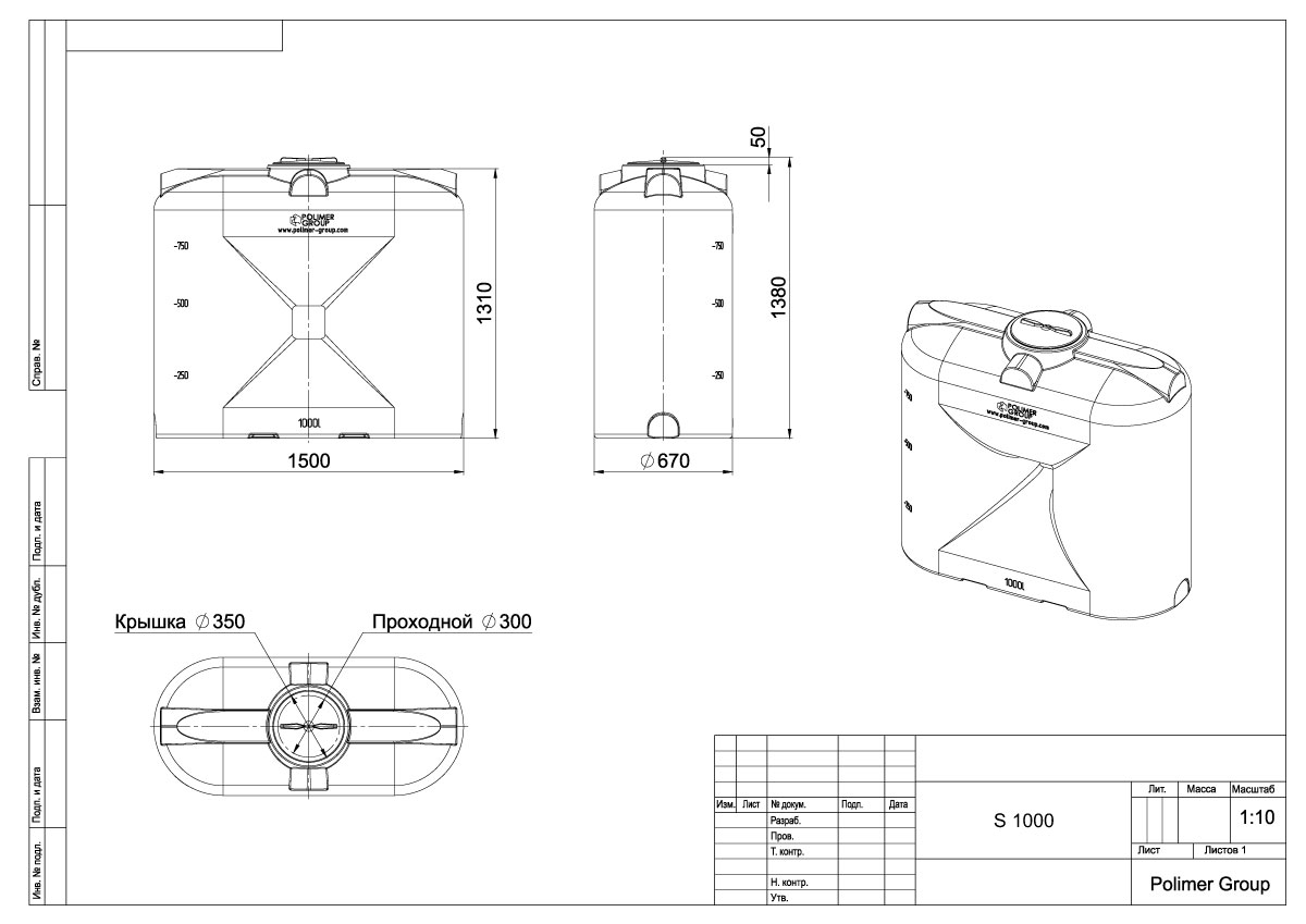 Емкость S 1000 – это прямоугольный пластиковый бак объемом 1000 литров, предназначенный для хранения питьевой воды, технических жидкостей, а также дизельного топлива.