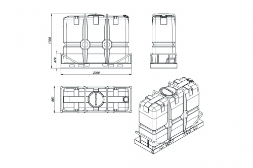 Обрешетка позволяет установить дополнительное оборудование, например, насос или комплект для мобильной мини-АЗС, что значительно расширяет область применения емкости. Обрешетка также дает возможность фиксировать емкость в грузовике для удобства и безопасности транспортировки.