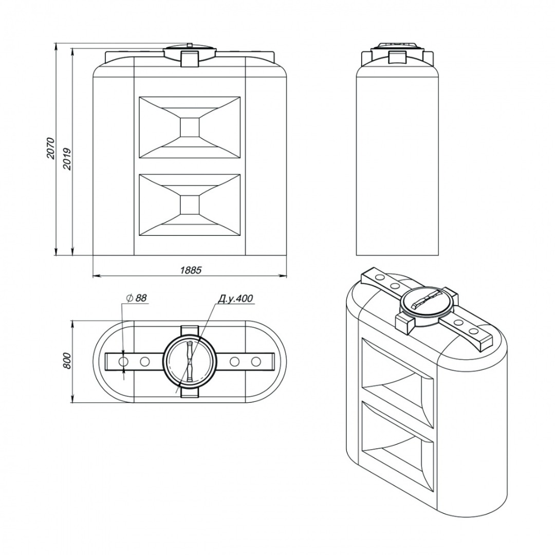 Емкость изготовлена из пищевого первичного полиэтилена. Материал обладает высокой устойчивостью к химическому и ультрафиолетовому воздействию, может эксплуатироваться в температурном диапазоне от -30 до +60 градусов. Корпус емкости цельнолитой – герметичен на 100%.