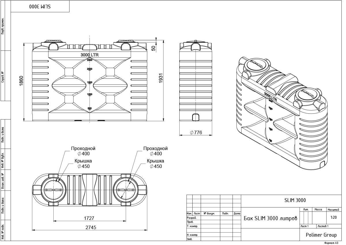 Бак SN 3000 литров ПОЛИМЕР-ГРУПП