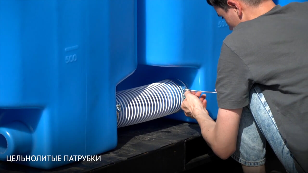 Резервуар ST 2000л имеет 2 патрубка диаметром 100мм (внешний диаметр патрубка, внутренний составляет не менее 65мм), которые позволяют быстро и надежно соединять емкости между собой. Патрубки – цельнолитые отводы, которые отливаются вместе с емкостью и образуют с ней единую бесшовную конструкцию.