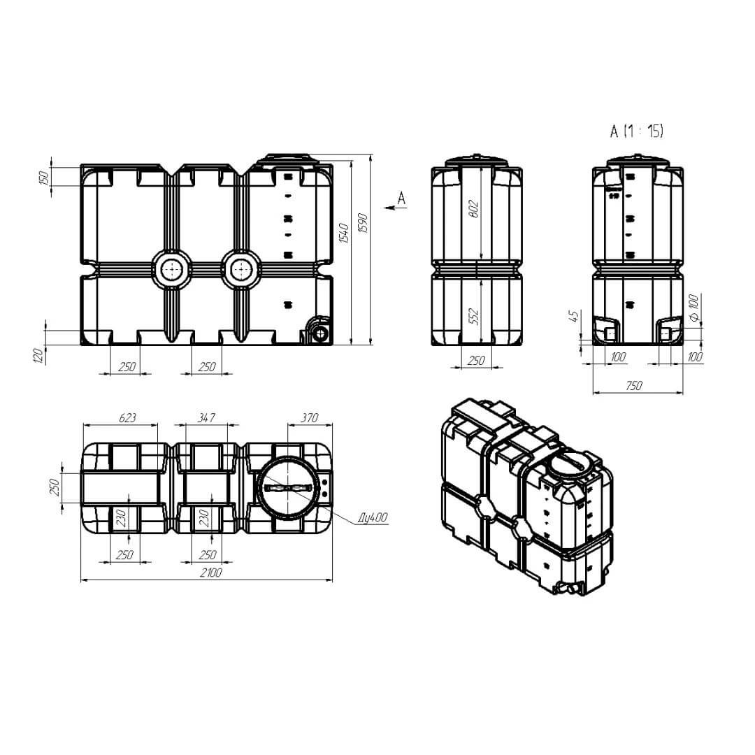 Емкость имеет устойчивую прямоугольную форму и компактные габариты, позволяющие разместить ST 2000л даже в условиях дефицита свободного пространства.