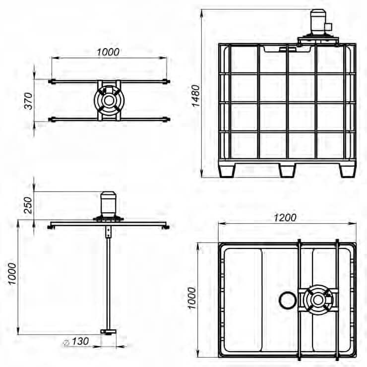 Комплект: IBC контейнер (еврокуб) + быстроходный миксер (мешалка) с комплектом креплений предназначен для решения локальных задач предприятия по смешиванию твердых частиц вещества в жидкой среде, в том числе химически агрессивной среде.