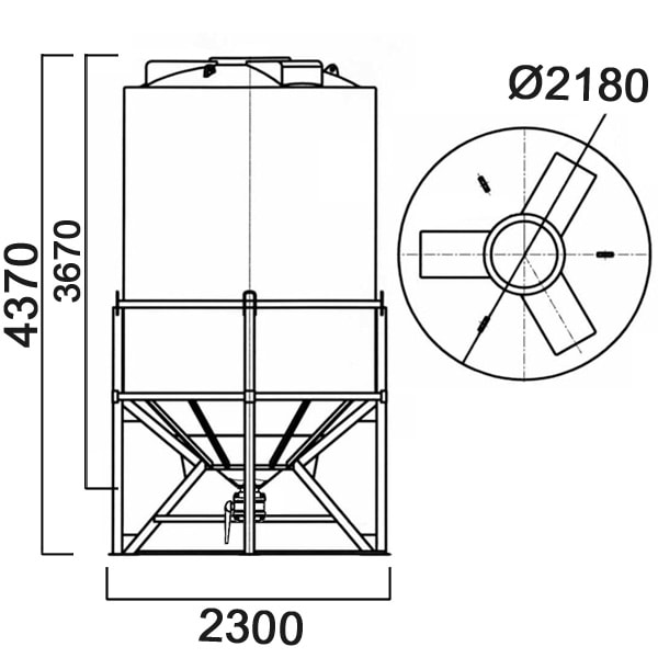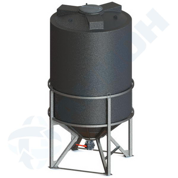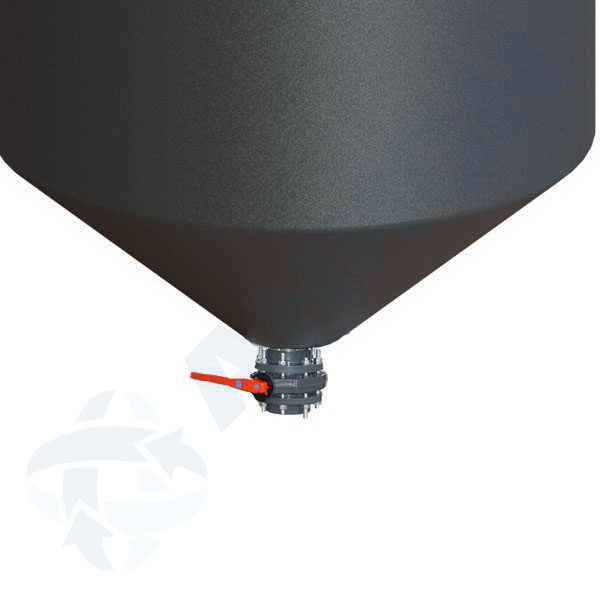 Полиэтиленовая емкость цилиндрической формы устойчива к воздействию УФ излучения и обладает повышенным сопротивлением к старению. Толщина стенки 5-10 мм. Дно имеет форму конуса с плоской площадкой D 360 мм, на которой установлена поворотная заслонка проходным D 160 мм. Уплотнительная резина EPDM.