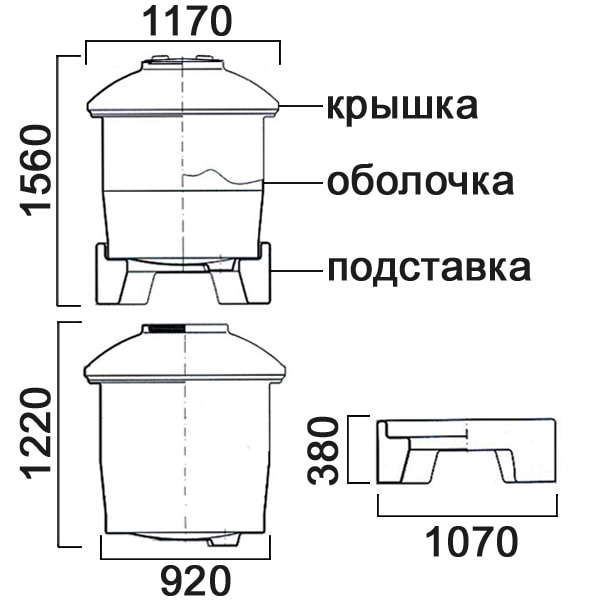 Емкость цилиндрическая 890 литров на подставке с дыхательным клапаном