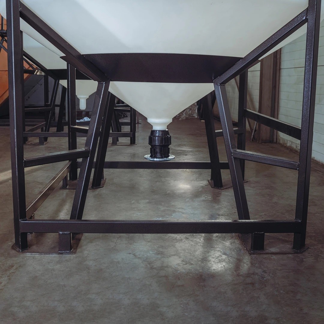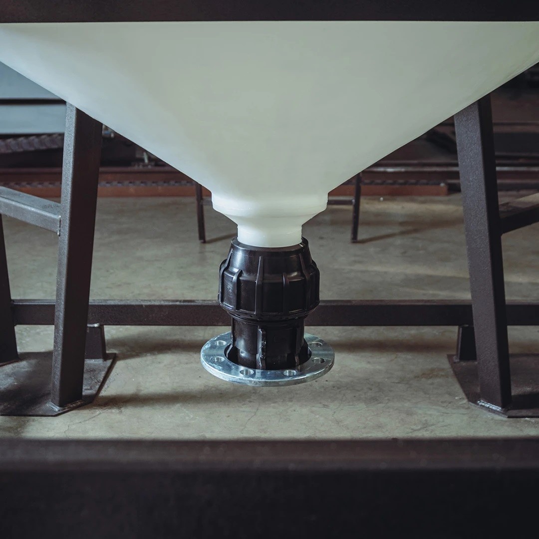 Конусное дно емкости ЦКТ снабжено литым патрубком (отводом). Патрубок не врезается в готовую емкость, а отличается вместе с ней, образуя цельную и бесшовную конструкцию.