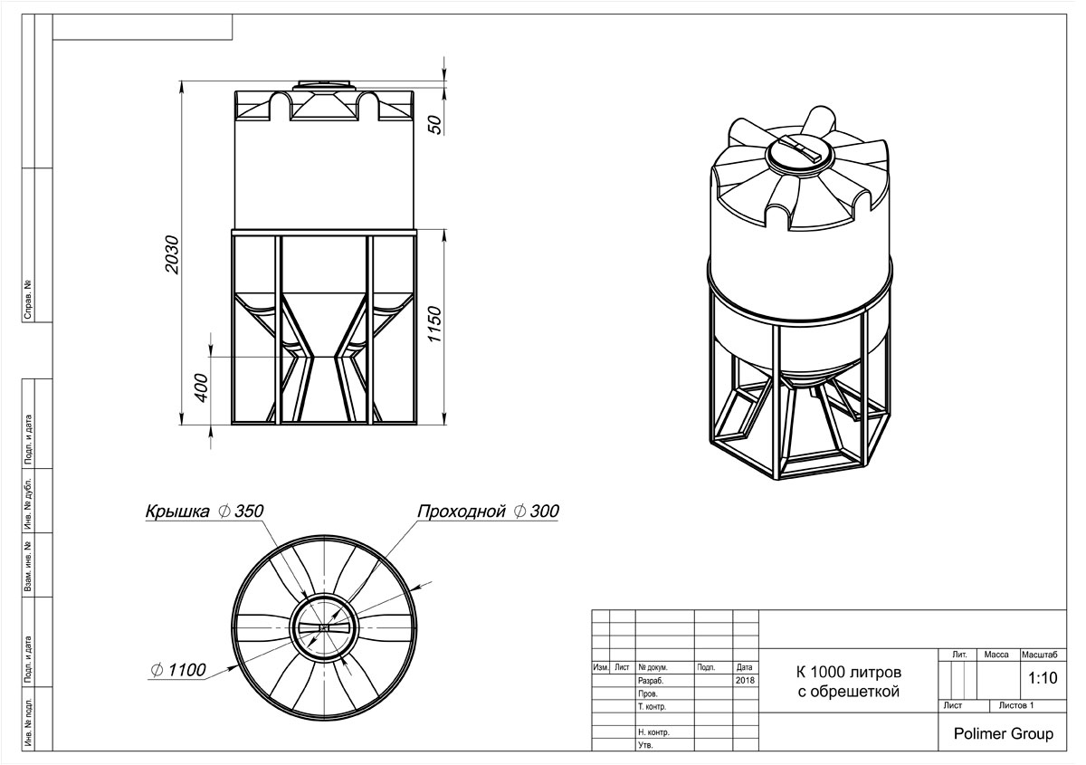 Емкость объема - 1000 литров с обрешеткой подходит для хранения пищевых, химических жидкостей. Емкость продается укомплектованной крышкой с дыхательным клапаном. Поставляется в металлическом каркасе, окрашенном черной краской.