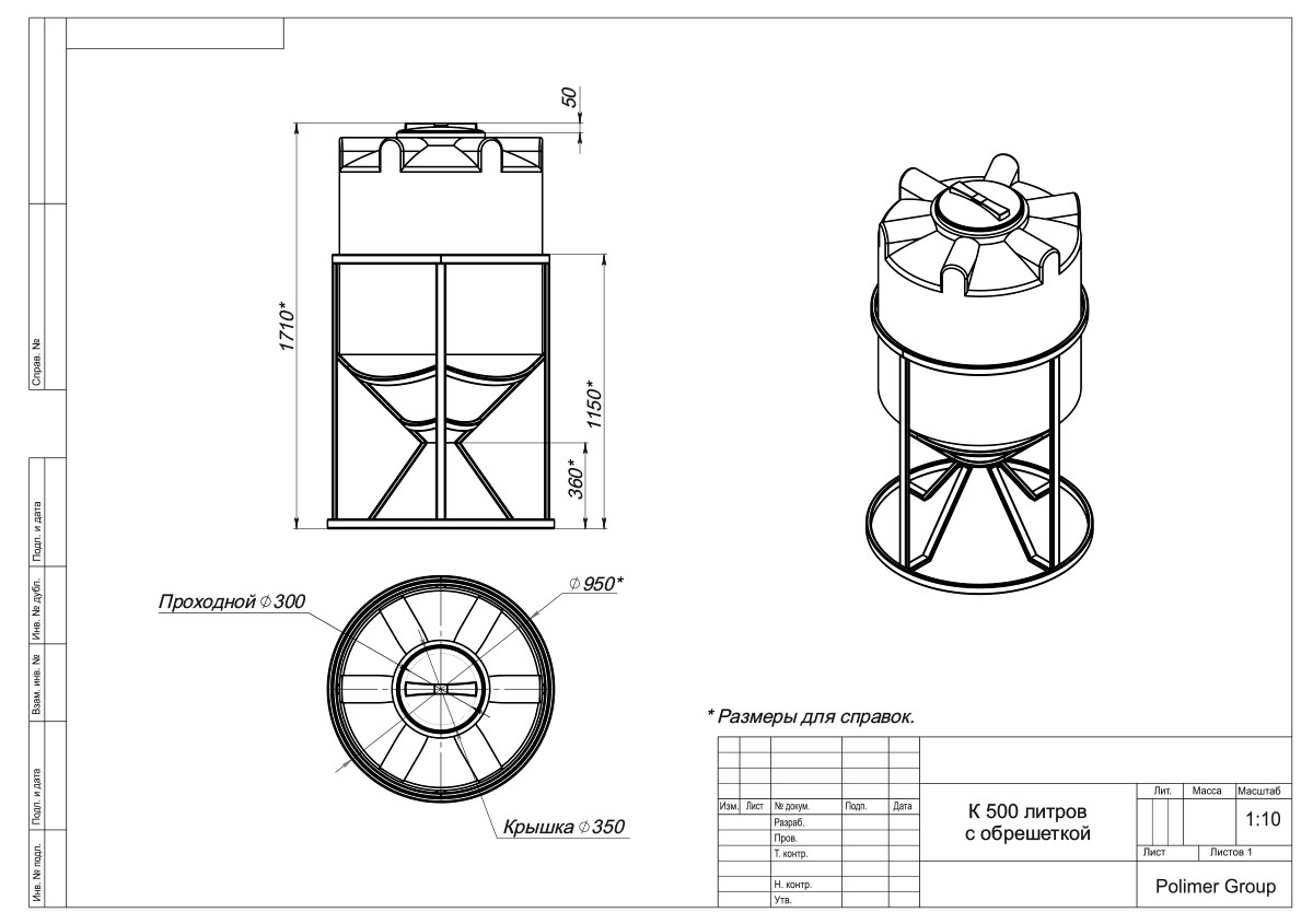 Емкость объема - 500 литров с обрешеткой подходит для хранения пищевых, химических жидкостей. Емкость продается укомплектованной крышкой с дыхательным клапаном. Поставляется в металлическом каркасе, окрашенном черной краской.