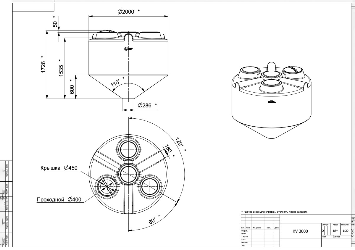 Емкость конусообразная KV 3000 литров (ЦКТ)