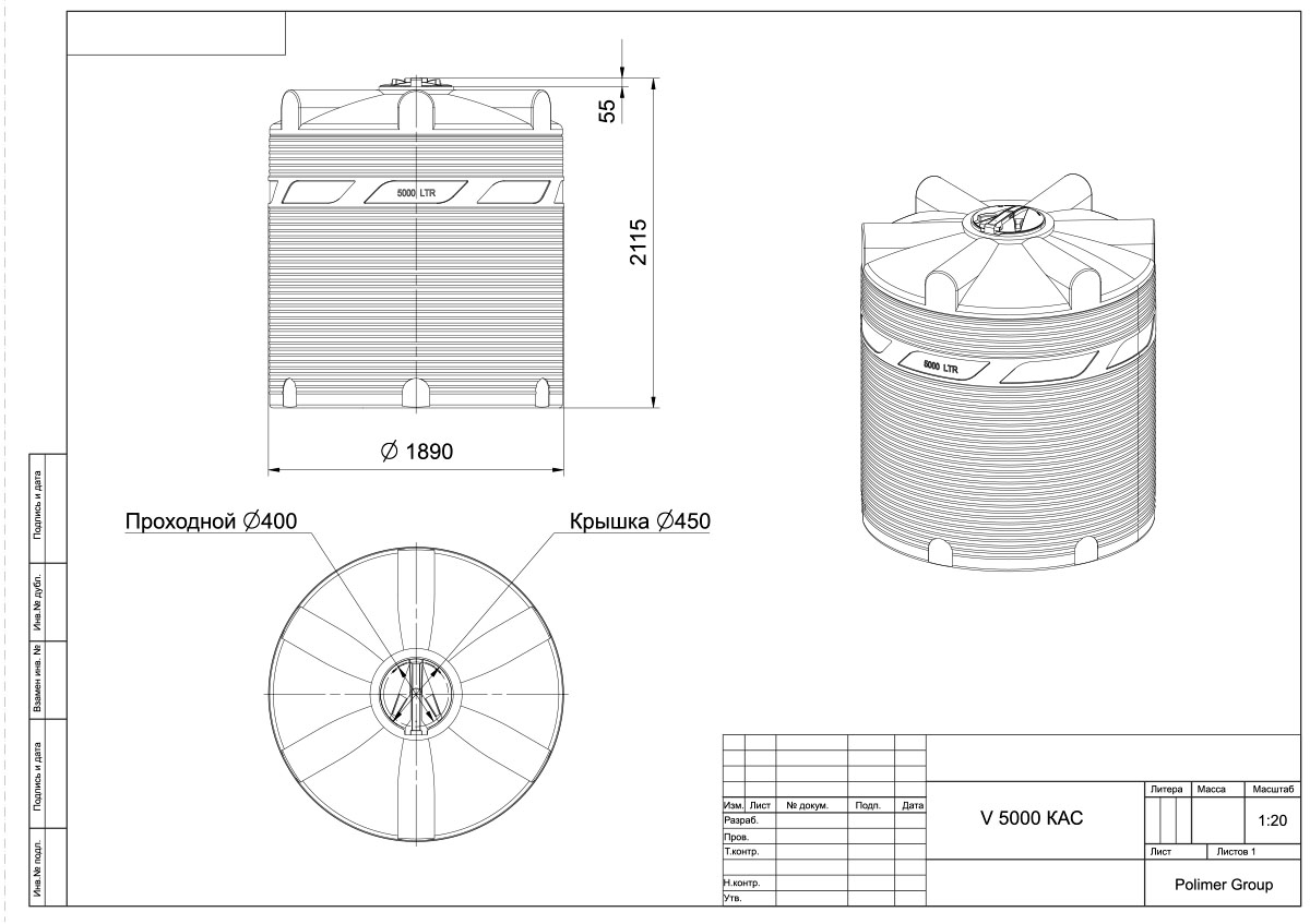 Емкость КАС V-5000 литров (откидная крышка)