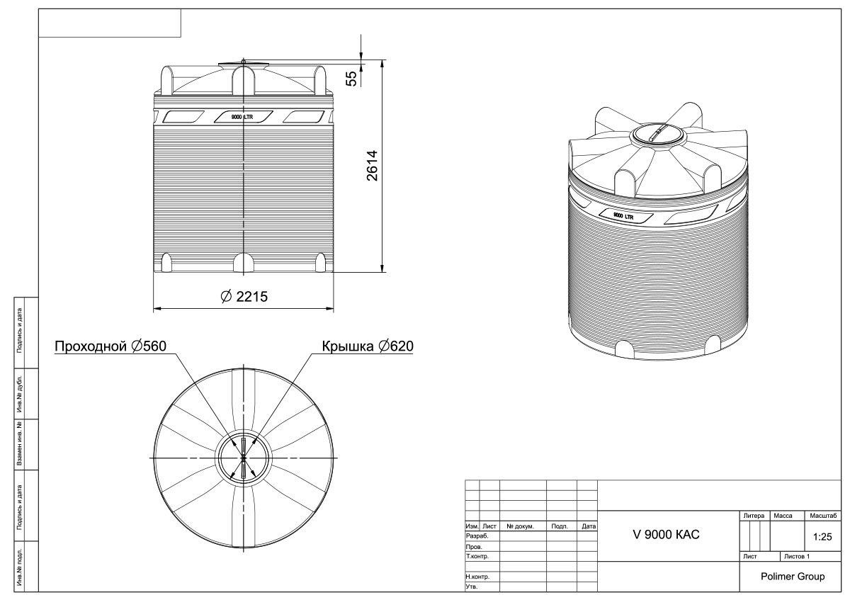 Емкость КАС V 9000 литров (крышка с дых.клап.)