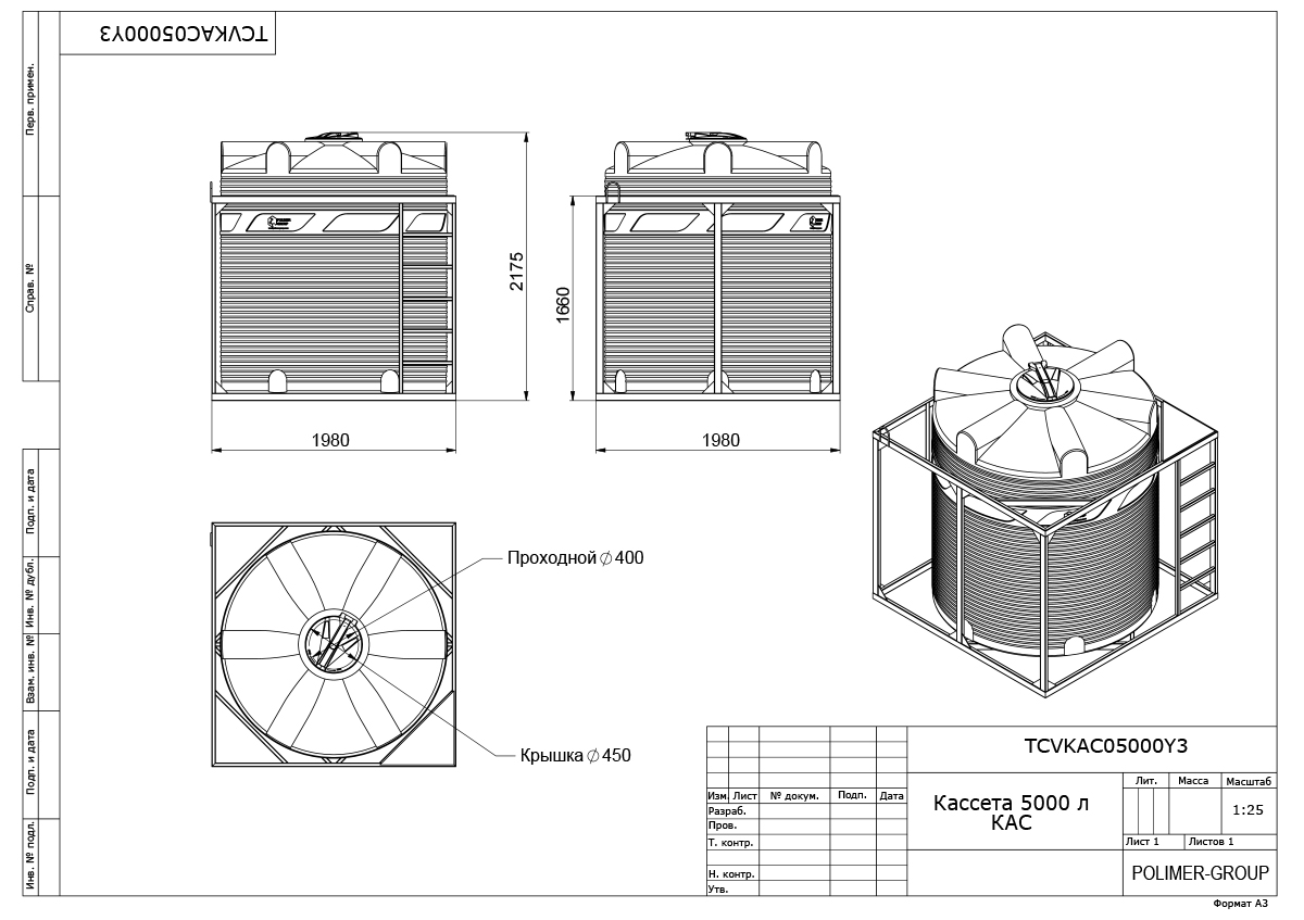 Кассета V 5000 одинарная (5000 литров) КАС с откидной крышкой