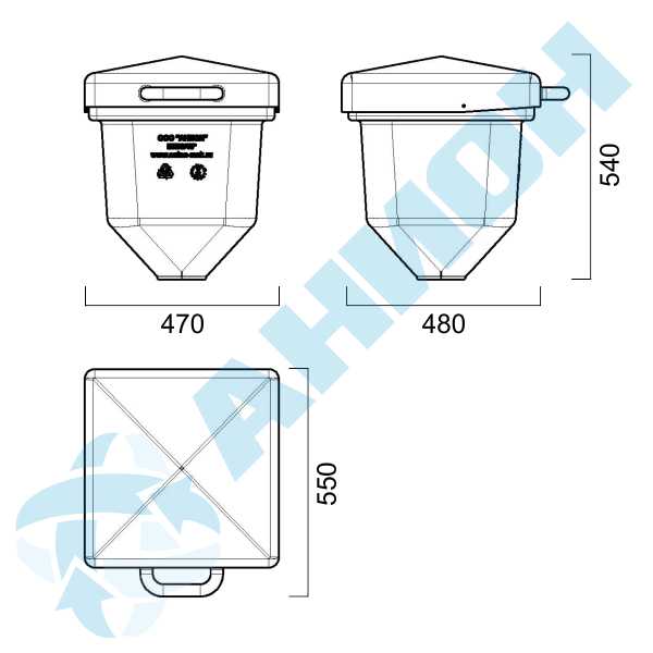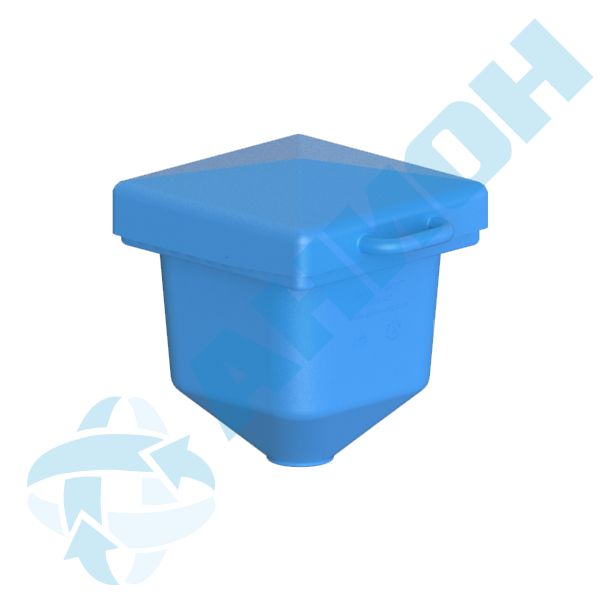 Бункер из полиэтилена вместимостью 45 литров может использоваться во многих сферах хозяйства: аквакультуре, на фермах, в приусадебном хозяйстве и др.