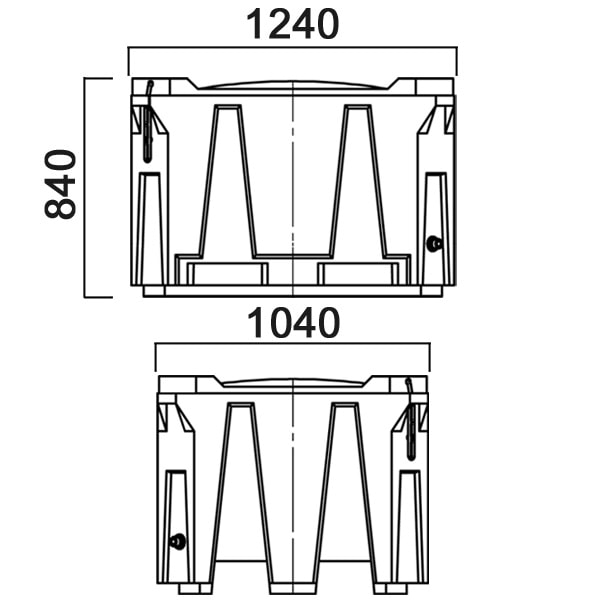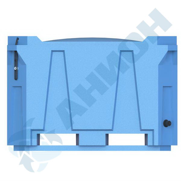 В нижней части контейнер оснащен двумя сливными штуцерами с заглушками. Комплектуется съемной усиленной крышкой К600, но может поставляться и без нее (артикул И600С). Крышка крепится к изделию четырьмя резиновыми запорами (рабберами).