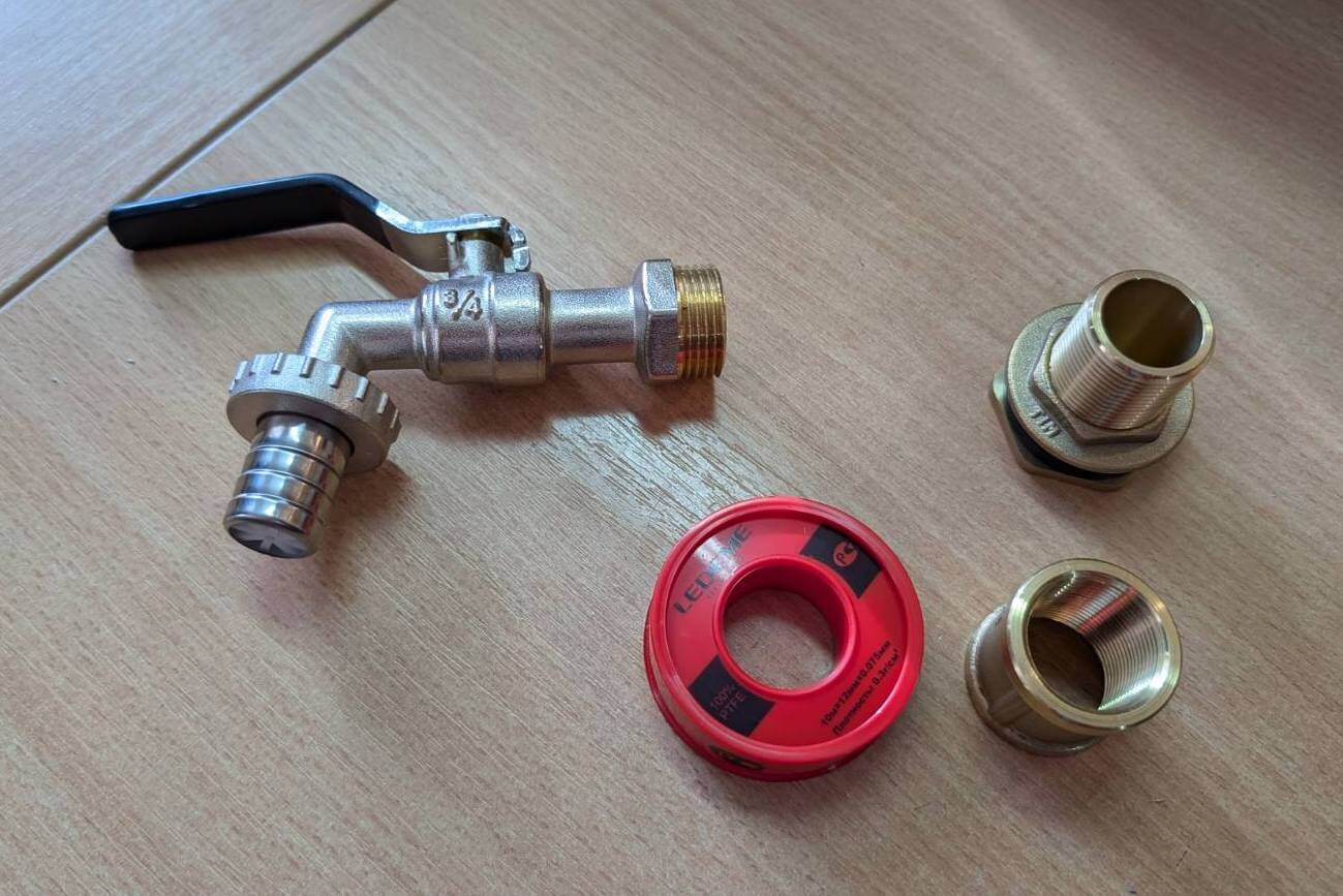Комплект сливного крана 3/4" латунь для емкости