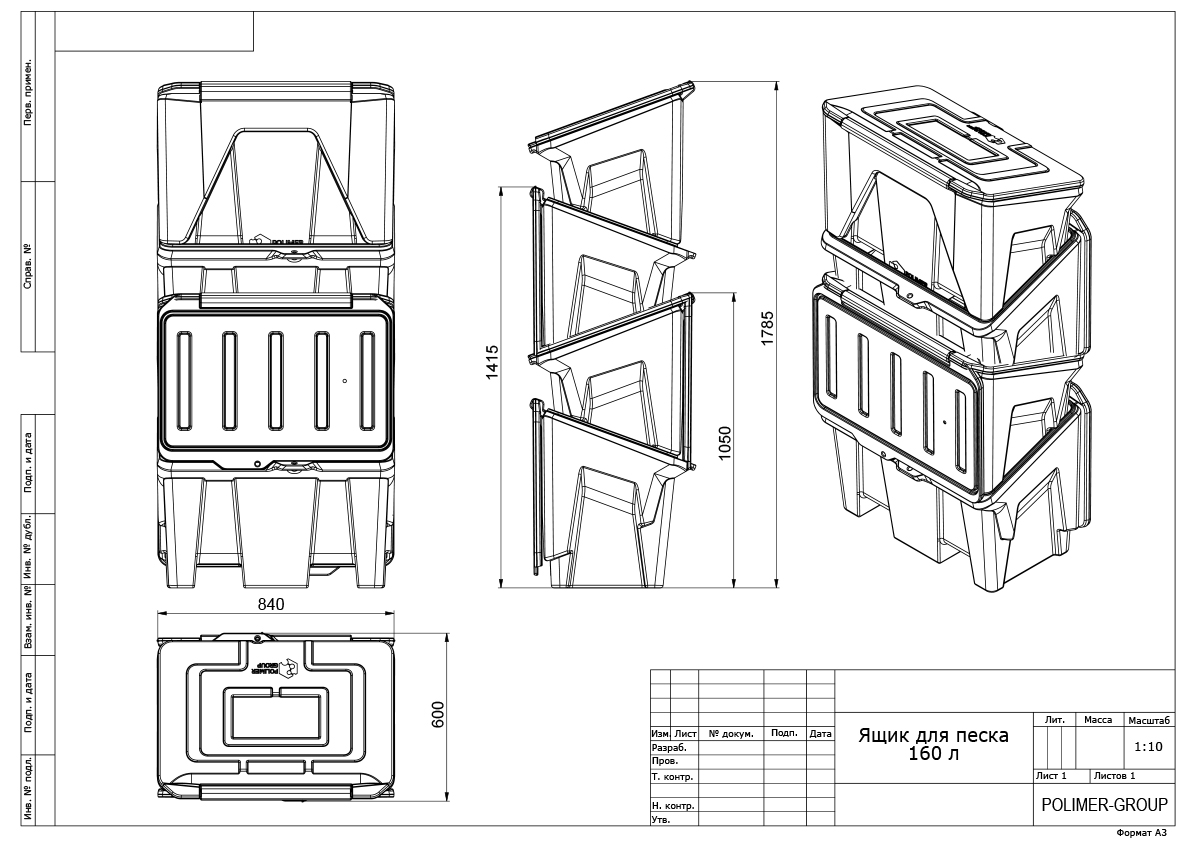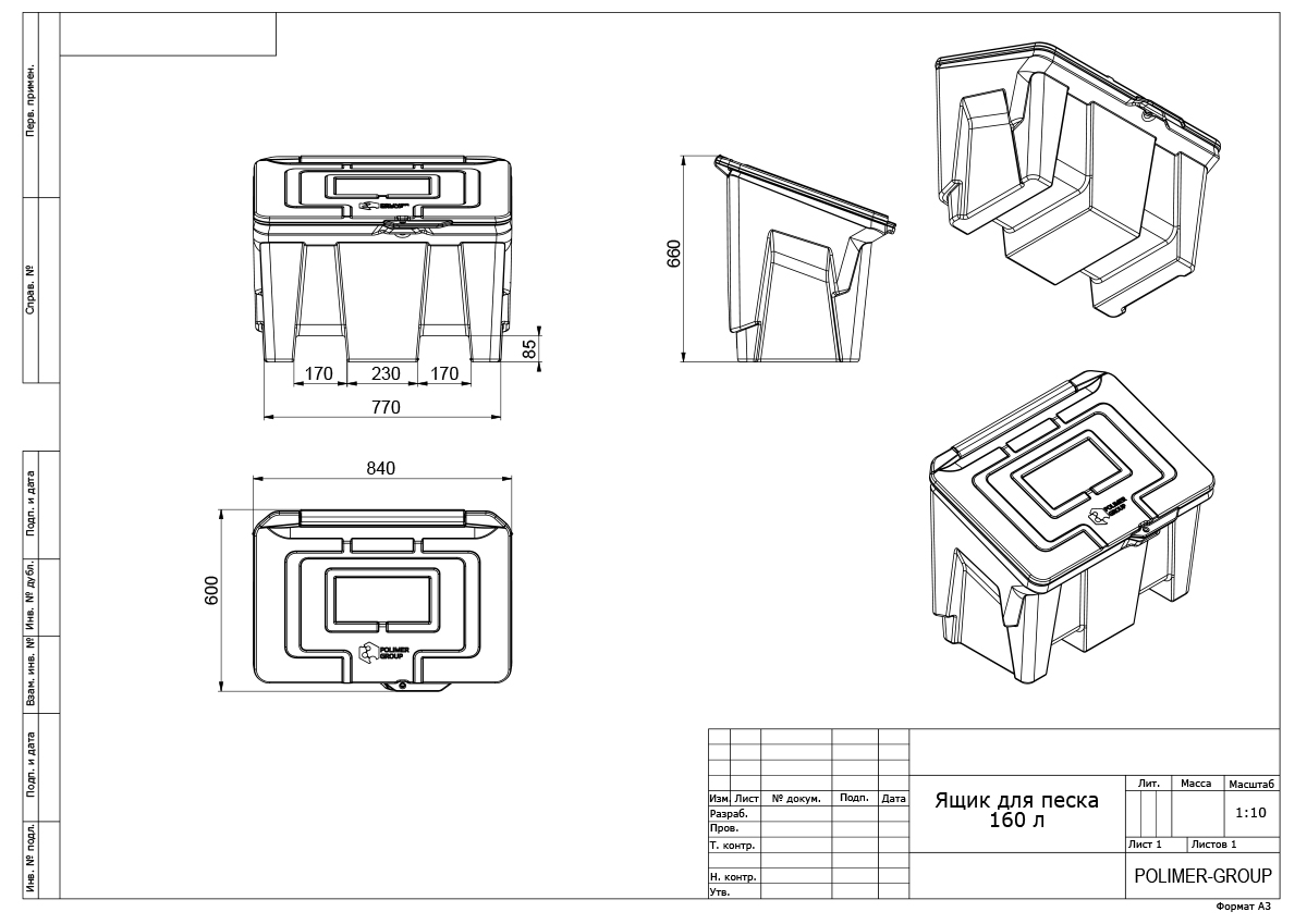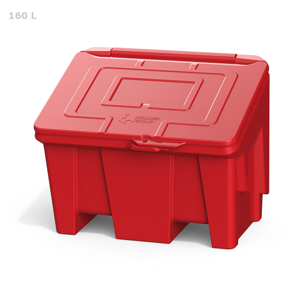 Объем контейнера 160 литров. Пригоден для хранения песка, применяемого для тушения пожаров на заправочных станциях и других объектах. Изготовлен из полиэтилена методом ротоформования, что придает особую прочность.