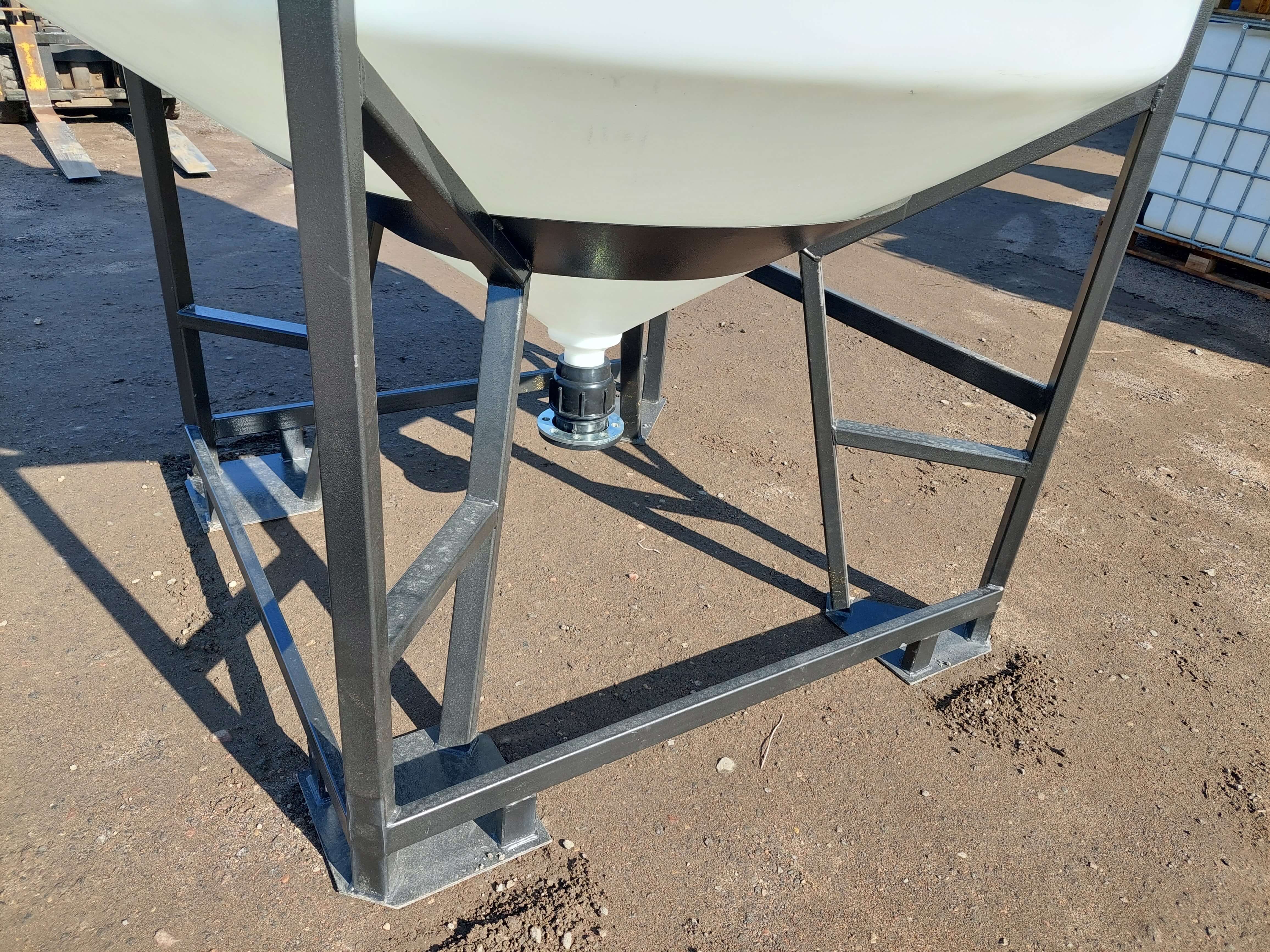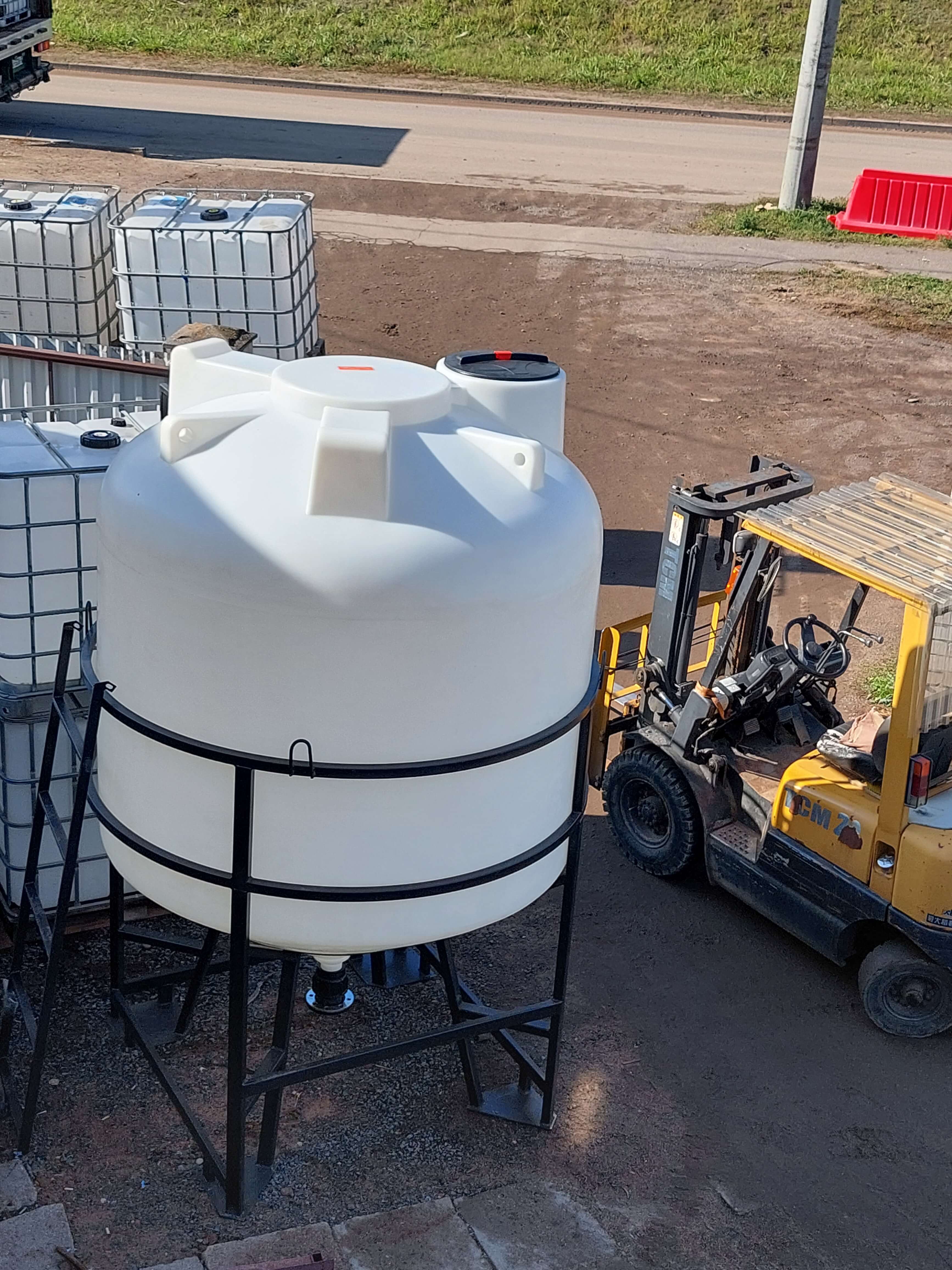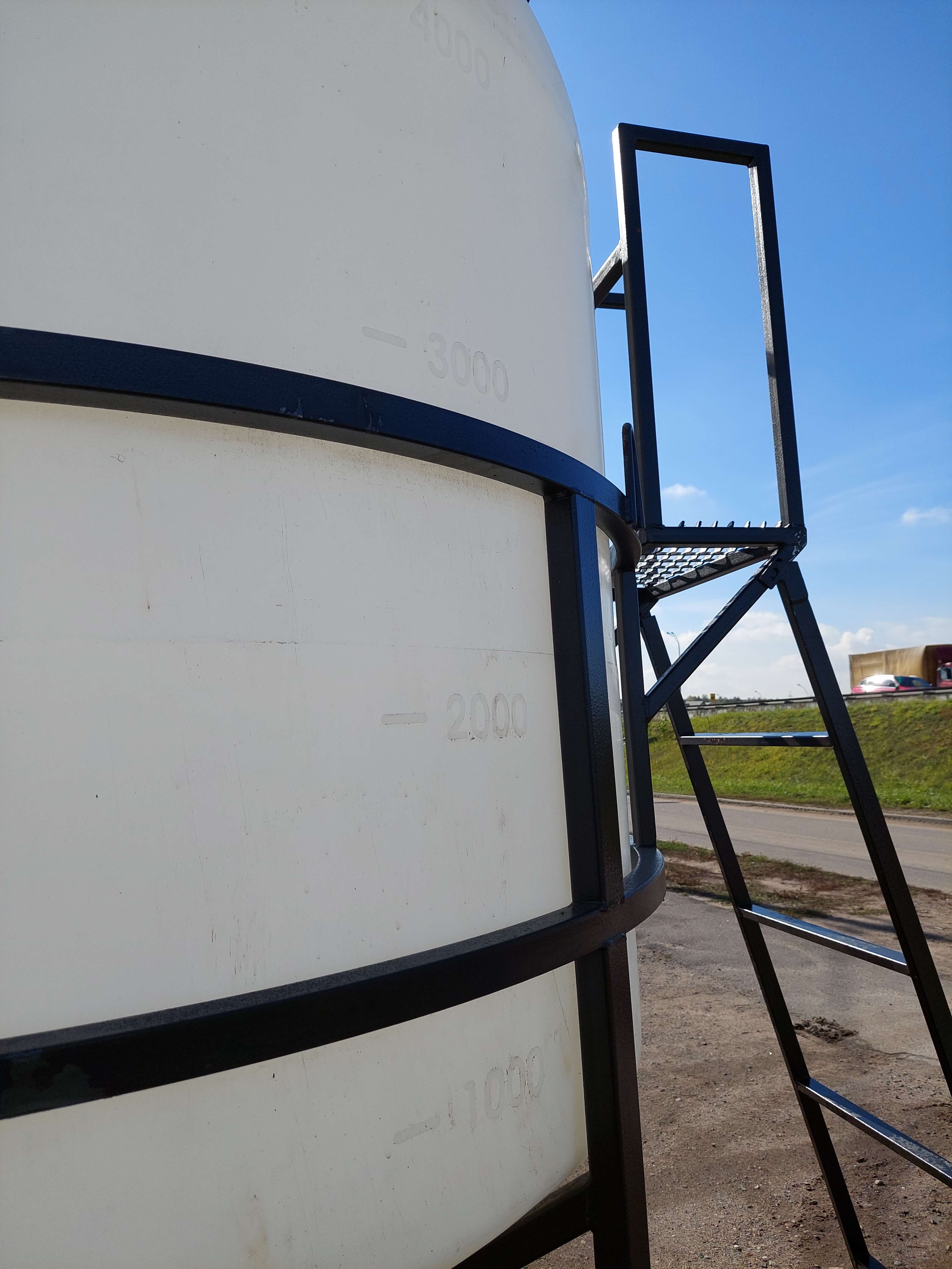 Задача: Подобрать промышленному предприятию РБ крупногабаритный цилиндрический резервуар с конусным дном. Объем емкости ЦКТ: от 3000 до 5000 литров. Металлическая обрешетка изделия должна быть оснащена лестницей со специальной площадкой и поручнями. Полный слив из емкости предусмотреть в нижней части конусного дна через цельнолитой нижний патрубок, который нужно укомплектовать обжимной муфтой с фланцем.