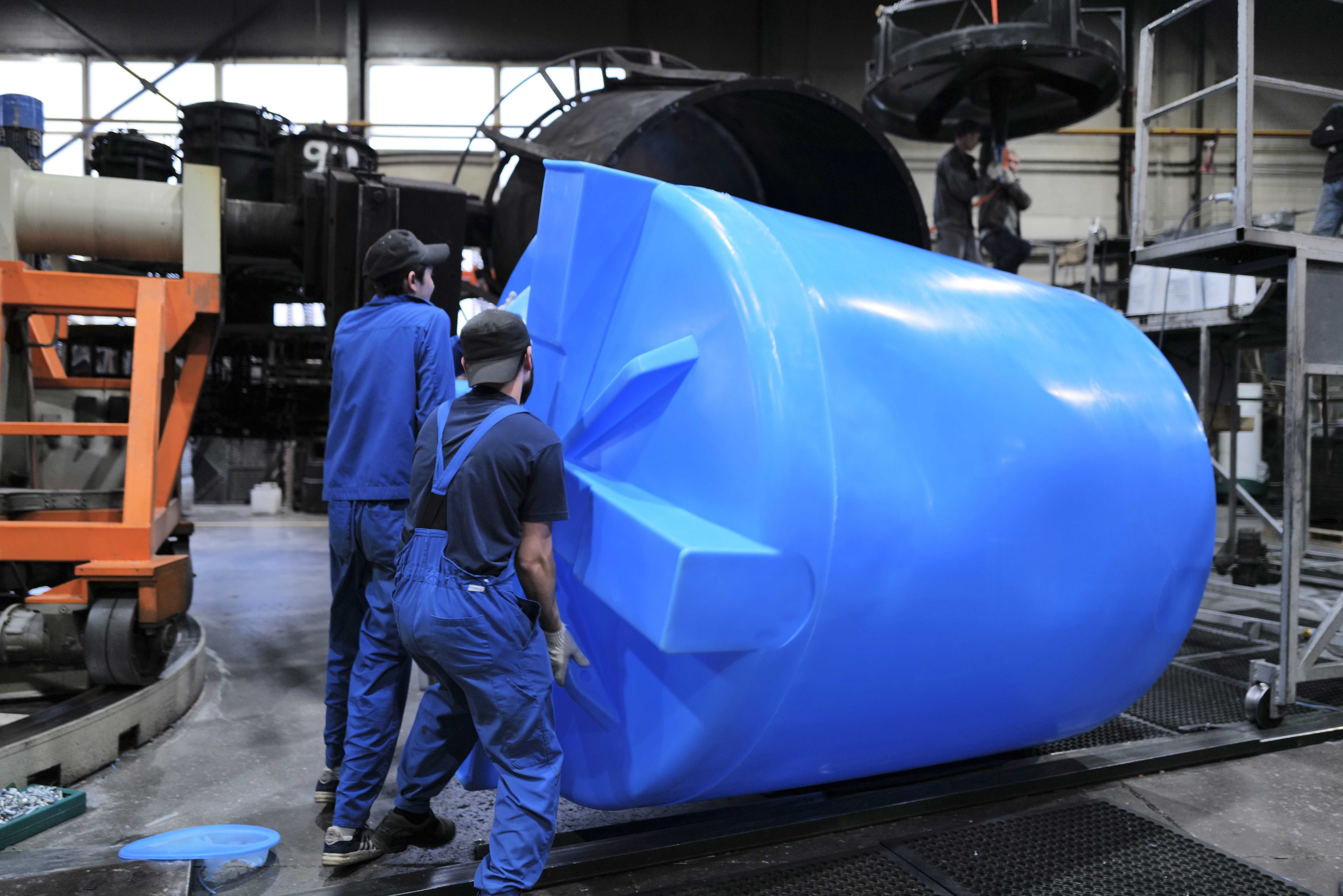 показать процесс производства емкостей из полиэтилена и других пластиковых изделий методом ротационного формования.